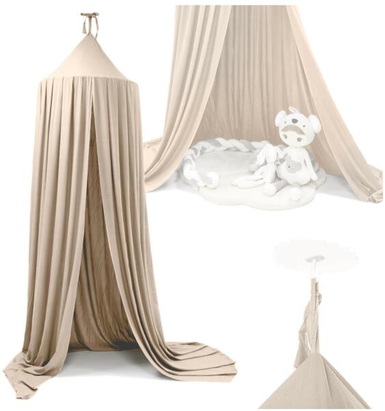 • bézs színű függő baldachin  a kiságyba vagy a babaszobába tökéletes kiegészítő, amely  varázslatot kölcsönöz minden szobának.  Könnyedén teremthet  otthonos légkört,  ahol gyermeke kényelmesen aludhat, játszhat vagy olvashatja kedvenc könyveit. Teljes hossza  290 centiméter  (zsinórok nélkül). Gyönyörűen fog kinézni az ágy vagy a kedvenc fotel fölé akasztva. A  világos bézs szín  tökéletesen illeszkedik a gyerekszoba színvilágába.   Az összeszereléséhez szükséges alkatrészeket  tartalmazza.