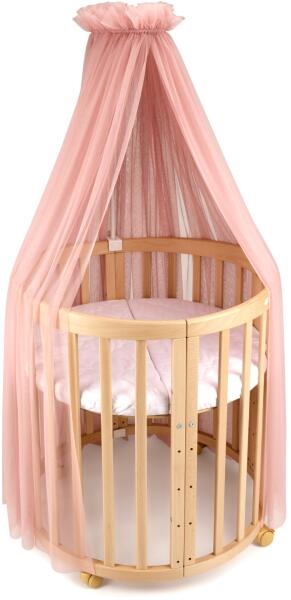 A gyönyörű rózsaszín, finom tüllből készült baldachin a növekvő 7 az 1-ben babaágyhoz egy elegáns kiegészítő, amelyet az otthonos babaszoba berendezéséhez használhat fel. A baldachin a csomagban található fém állvány segítségével a kiságy fölé szerelhető fel. A baldachinok, gyerek ágyneműhuzatok és lámpák kiváló kiegészítői a gyerekszobának.  Ez az elegáns kiegészítő a gyerek növekvő kiságyhoz finom fátyolszerű tüll anyagból készült, amely 30°C-on mosható. A baldachint mosás után ajánlott felakasztani, hogy saját súlya segítségével felvegye a megfelelő alakot és így szükségtelen a vasalás. A tüll baldachin több színben is kapható, ezért kiválaszthatja a legmegfelelőbbet a növekvő 7 az 1-ben kiságyhoz.